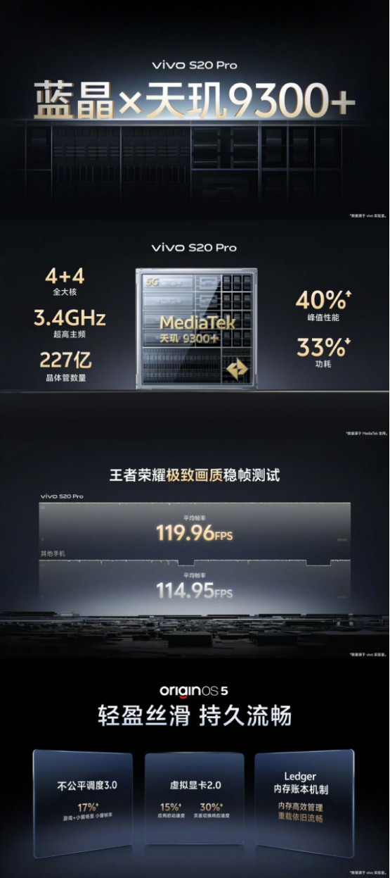 性能方面,vivo S20 搭载了第三代骁龙7处理器,vivo S20 Pro 则采用了天玑 9300+旗舰处理器,轻松玩转大型手游,性能方面完全不需要担心。再加上京东方Q10的1.5K分辨率悦目护眼屏和OriginOS 5操作系统,vivo S20系列在配置上太厚道了。