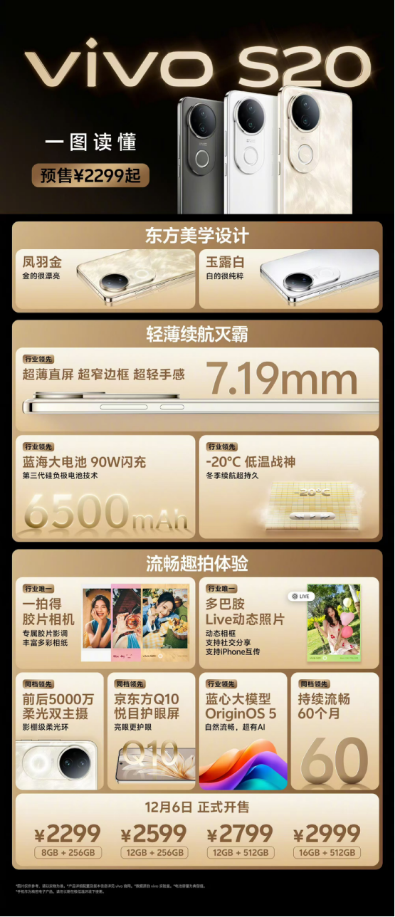 售价方面,vivo S20起售价2299元,vivoS20 Pro起售价3399元,诚意十足。最近有购机打算的小伙伴可以准备入手了!