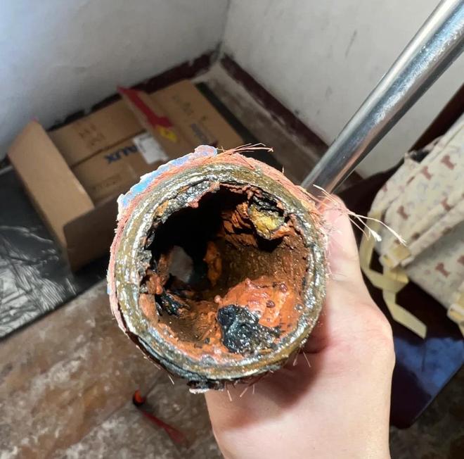 当然,房子新旧并不是问题,问题就在于,接近30年了,还用的铸铁管,就意味着势必这个铸铁管里面已经锈的不成样子了。