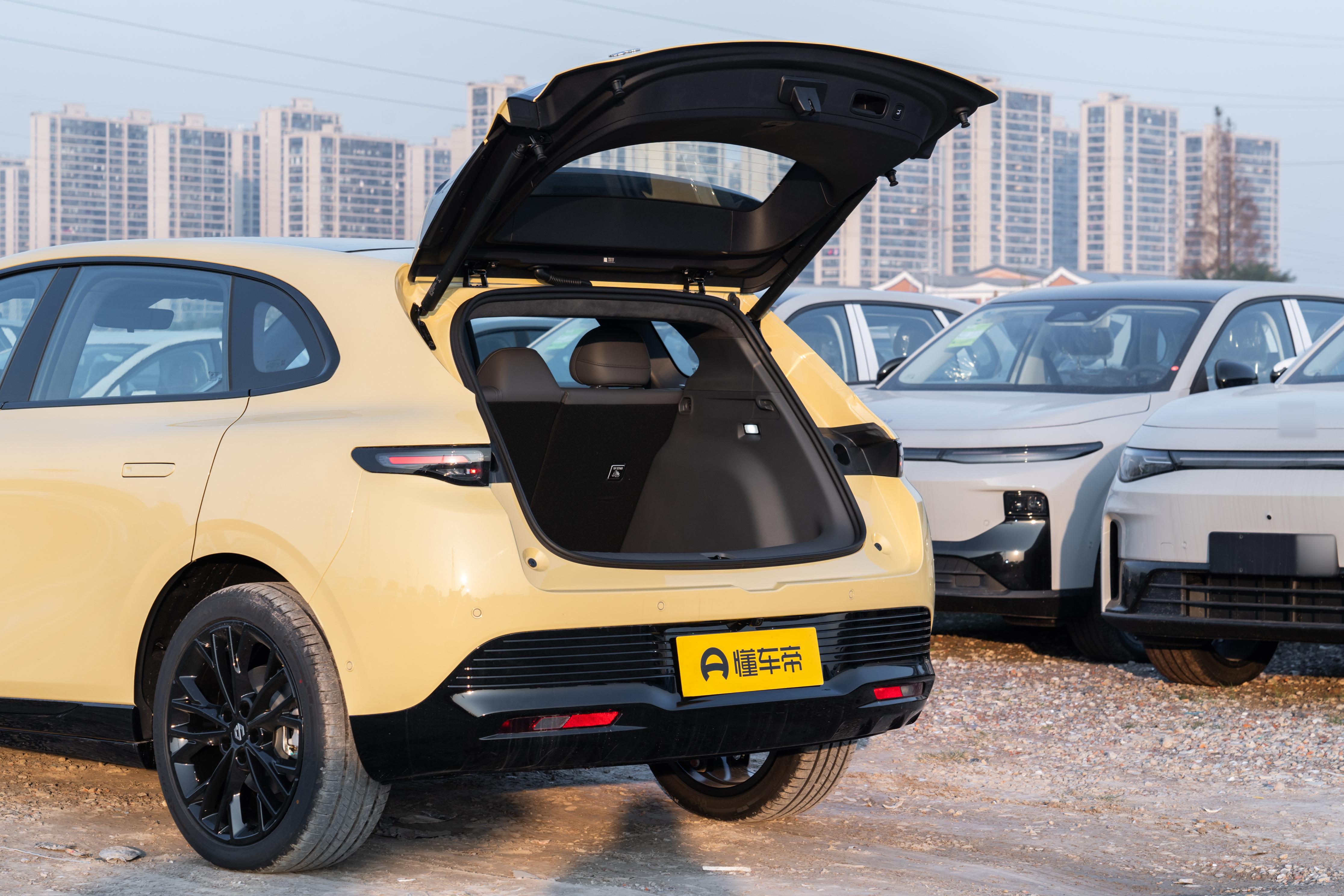 今早到 4S 店,第一眼就看到展厅中央的电掣黄实车,瞬间挪不开脚 —— 这颜色真不是图片能还原的,不是那种刺眼的亮黄,而是带着金属细闪的暖黄,阳光下看细腻又有质感,销售说用了 6 涂 6 烘工艺,我忍不住上手摸了摸,漆面顺滑厚实,没有一点颗粒感,连车门边缘的喷漆都很均匀,细节很到位。旁边看车的阿姨还问这黄色会不会不耐脏啊?销售说这漆加了抗污涂层,平时洗车随便擦两下就行,而且越看越耐看。封闭式前脸搭配贯穿式灯组,配合无边框车门、隐藏式门把手,营造出同级罕见的轿跑质感,0.256Cd超低风阻系数兼顾颜值与能效,我很喜欢这个无框车门,仪式感直接拉满,开门时玻璃会自动降 3 毫米,刚好避开门框,关门时 “咔嗒” 一声,厚重感十足,完全不像这个价位的车。19 英寸的黑色掠翼轮毂和黄色车身撞色,视觉上特别炸,轮毂盖是磁吸的,销售演示了一下,轻轻一扣就装上,以后想换样式也方便,这点太懂我们年轻人了。如果觉得这些还不够“炸街”,还可以选择Ultra版,将拥有更夸张的前后包围和后扰流板。同时,Lafa5还拥有过去车型不常见的个性化车漆,比如电擎黄、星夜蓝、摩根粉等,虽然不是亮眼的纯色,但也足够年轻用户的喜爱。