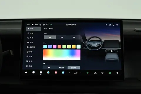 拉开无框车门坐进Lafa5的车内,那质感完全超出了我的预期,根本不像这个价位的车型该有的水准。车内用的是超椭圆数字曲面设计,还搭配了256色氛围灯,我晚上开车的时候发现,氛围感直接拉满,不同场景切换不同颜色,看着特别舒服。内饰有速域紫、驰影灰、竞速灰三种配色可选,其中竞速灰版本真的太对我这种运动爱好者的胃口了,Nappa全粒面真皮和仿麂皮超纤绒的组合,我用手摸上去觉得细腻又柔软,触感特别好。