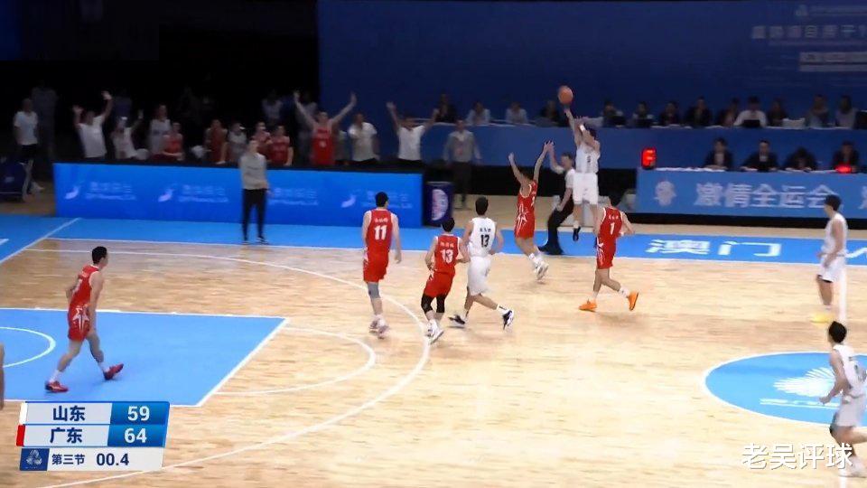 第一节吹何文炜三个犯规几乎把广东队逼入了绝境,山东男篮在张博源的带领下,在上半场比赛结束,山东队以42-41还反超了广东队1分。一度起势。比赛中也有很多精彩的镜头,何文炜在4个山东球员中拼下篮板,这球太像徐杰了,他咬牙拼下的篮板和精准抢断让人称赞。