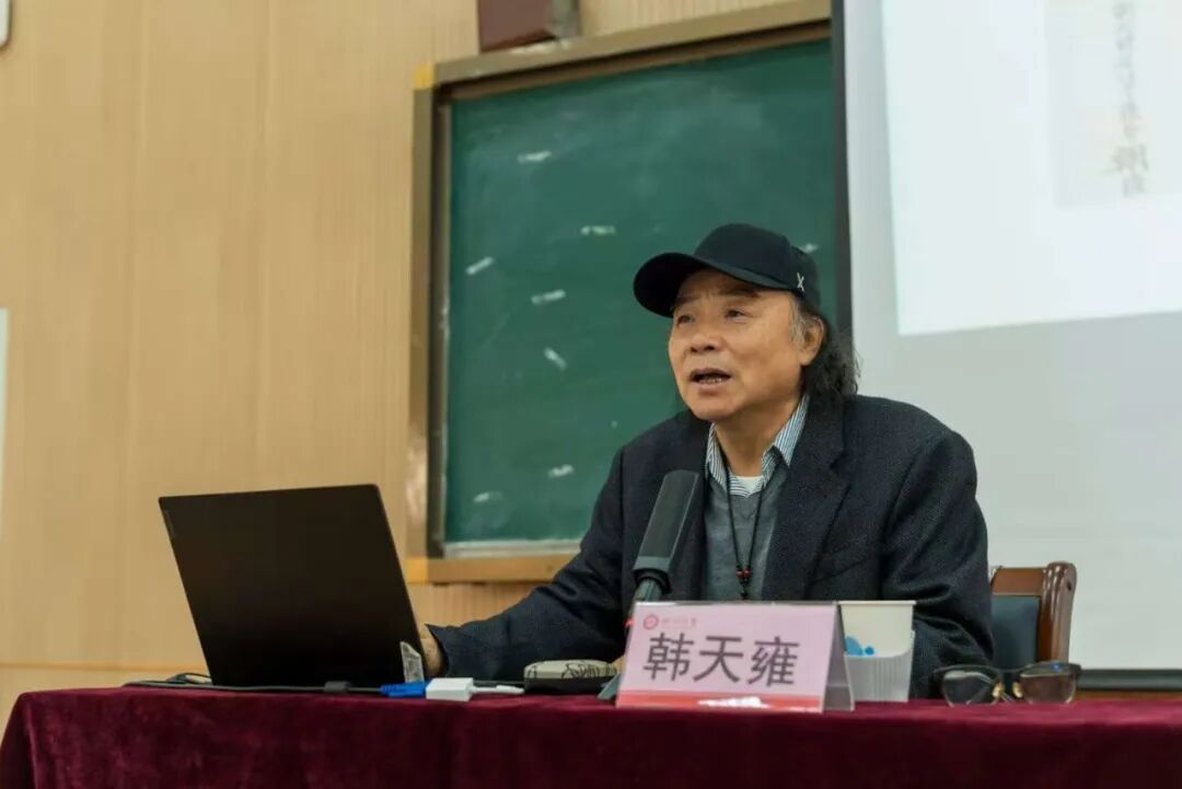 2025年10月21日,中国美术学院著名学者、书法家、篆刻家、金石学家、书法教育家韩天雍教授应邀访问临沂大学美术学院,举行著作捐赠暨特聘教授聘任仪式,并作题为《从比较学的观点看王羲之对日本书道的影响》的学术讲座。活动由书法学教研室主任刘希龙主持,美术学院书法学专业师生200余人参加。