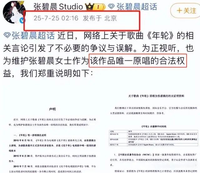 因为张碧晨演唱这版《年轮》已经有非常强的知名度了,后续如果比如像一些综艺或者一些剧、电影,想要这首歌授权,就会去买张碧晨这个版本,而不是汪苏泷的版本,或者是其他翻唱版本。这个钱是进张碧晨的口袋的。当然,这个钱也该给她,汪苏泷方也没有很在意。