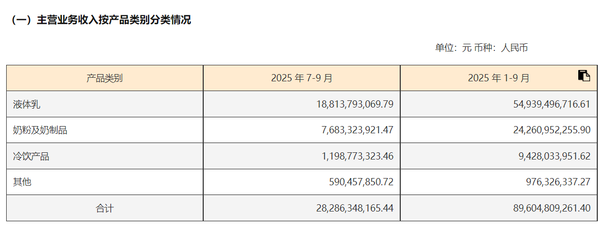 (2025年前三季度伊利股份液体乳业绩,图源:公司三季报)