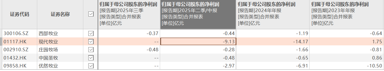 港股上市的优然牧业、现代牧业、中国圣牧三大奶牛牧场运营商也已连年亏损,2025年上半年分别亏损2.97亿元、9.13亿元、0.48亿元。