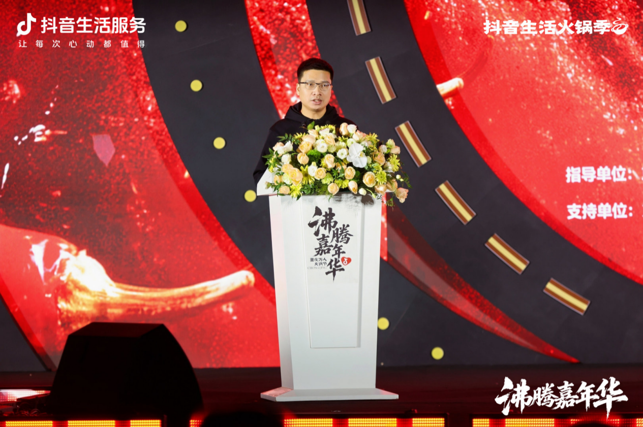 重庆市商务委员会主任章勇武在开幕式致辞中表示,重庆火锅承载着巴渝文化的深厚底蕴,是促进消费、拉动产业、繁荣市场的重要力量。当前,重庆正全力打造“世界火锅之都”,并积极推进全国首部火锅产业立法,系统构建火锅产业标准体系、品牌体系和生态体系。他指出,此次与抖音生活服务合作举办万人火锅节,是深化“互联网+火锅”融合、以数字消费助推产业升级的关键举措,旨在让传统火锅拥抱新场景、链接新市场、焕发新生机。