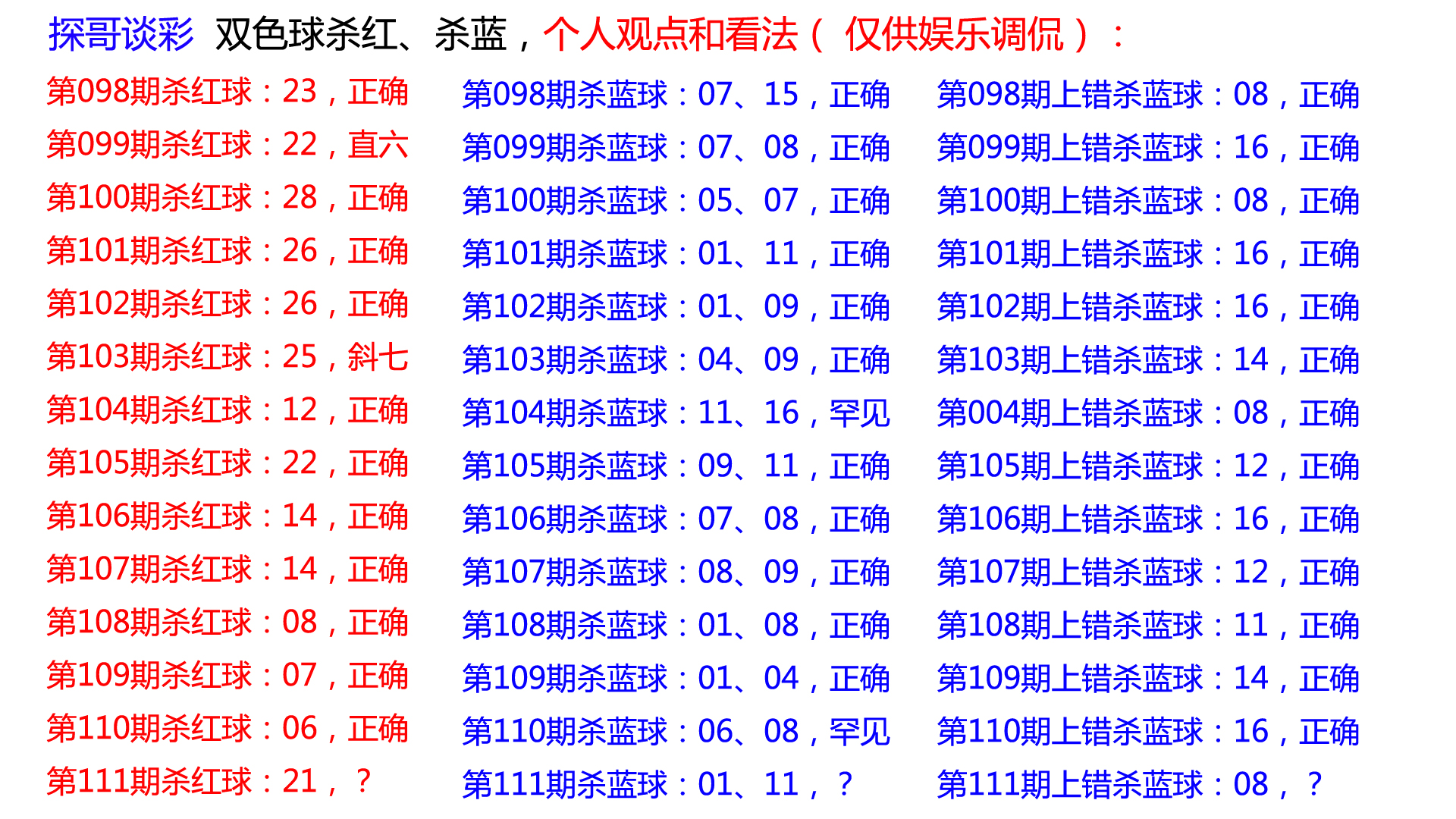 四、本期红球、蓝球杀号(个人观点看法,仅供娱乐调侃):