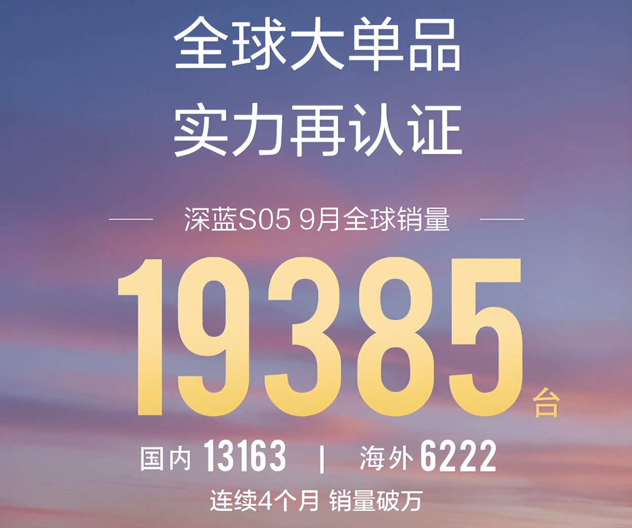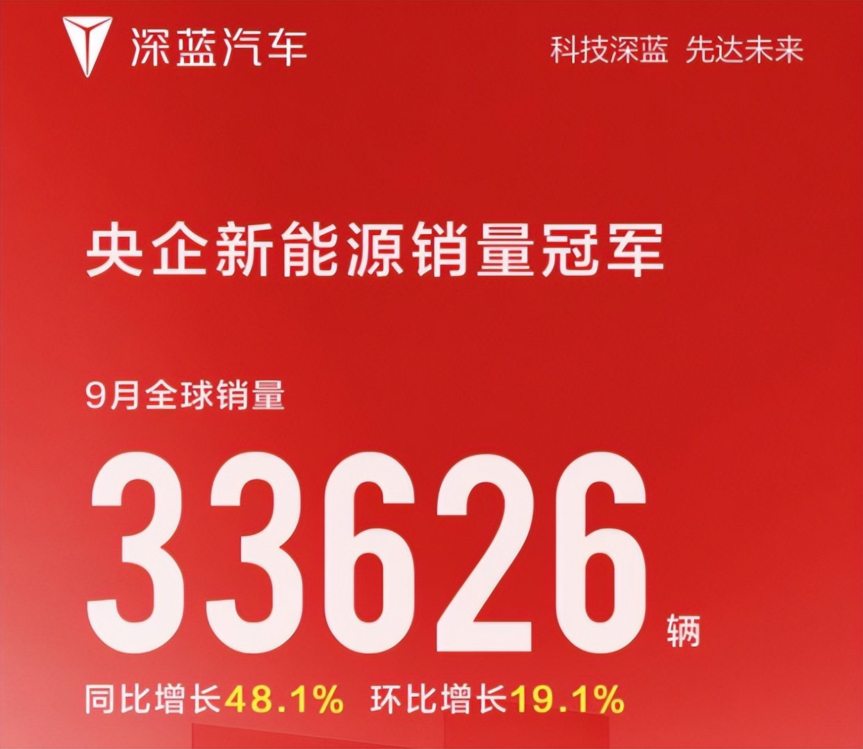 9月份,深蓝完成了3.3万余辆新车销量,为了凸显出来同比48%的涨幅,深蓝特意把S05的成绩做了张海报出来。