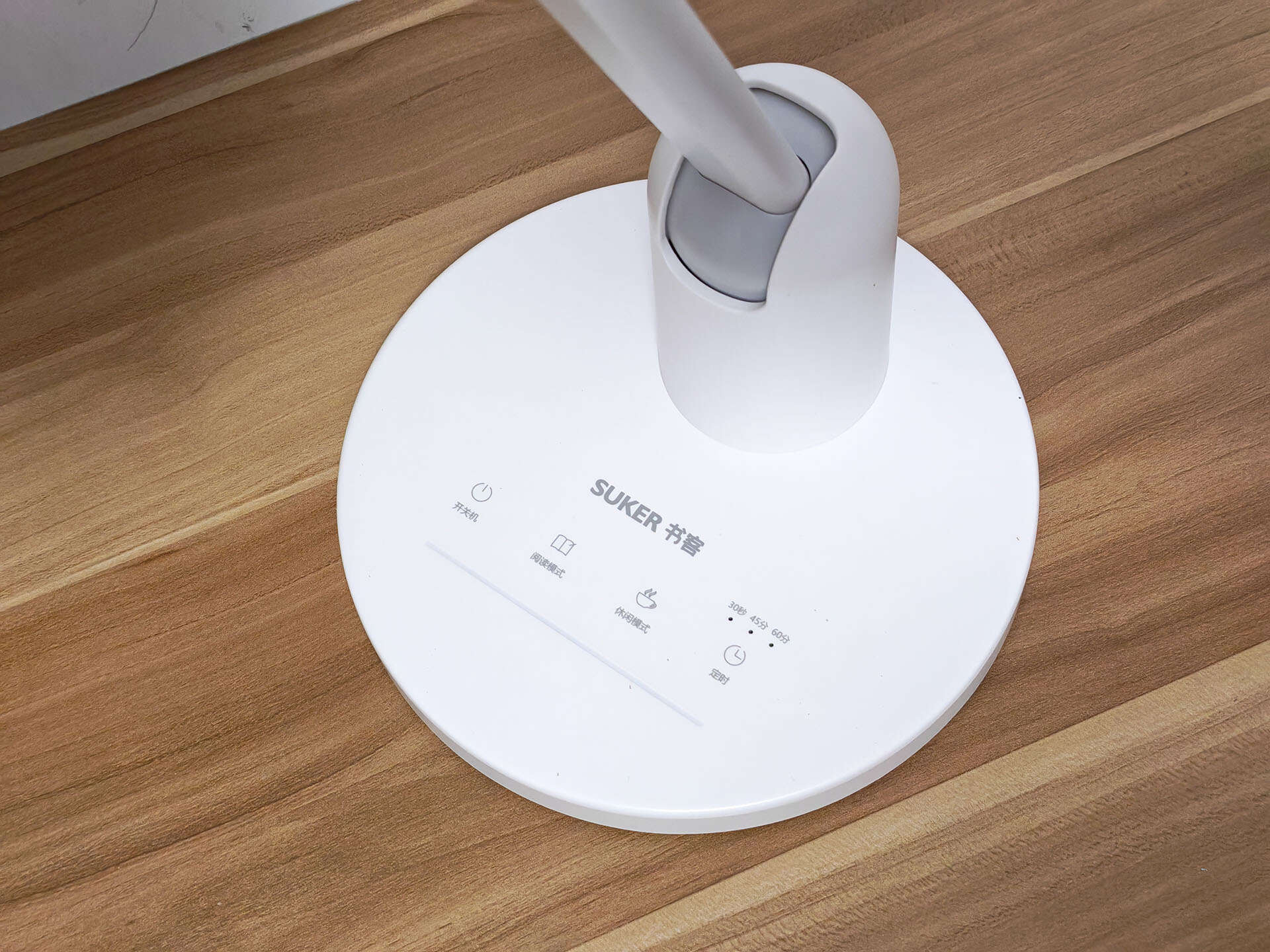 首先在颜值方面,书客SKY护眼台灯就设计到了我的审美点上:白色铝合金灯臂搭配厚实底座,磨砂质感细腻还不沾指纹,而且整体不见外露线材,设计极简,放在原木书桌或儿童学习桌上都很和谐。