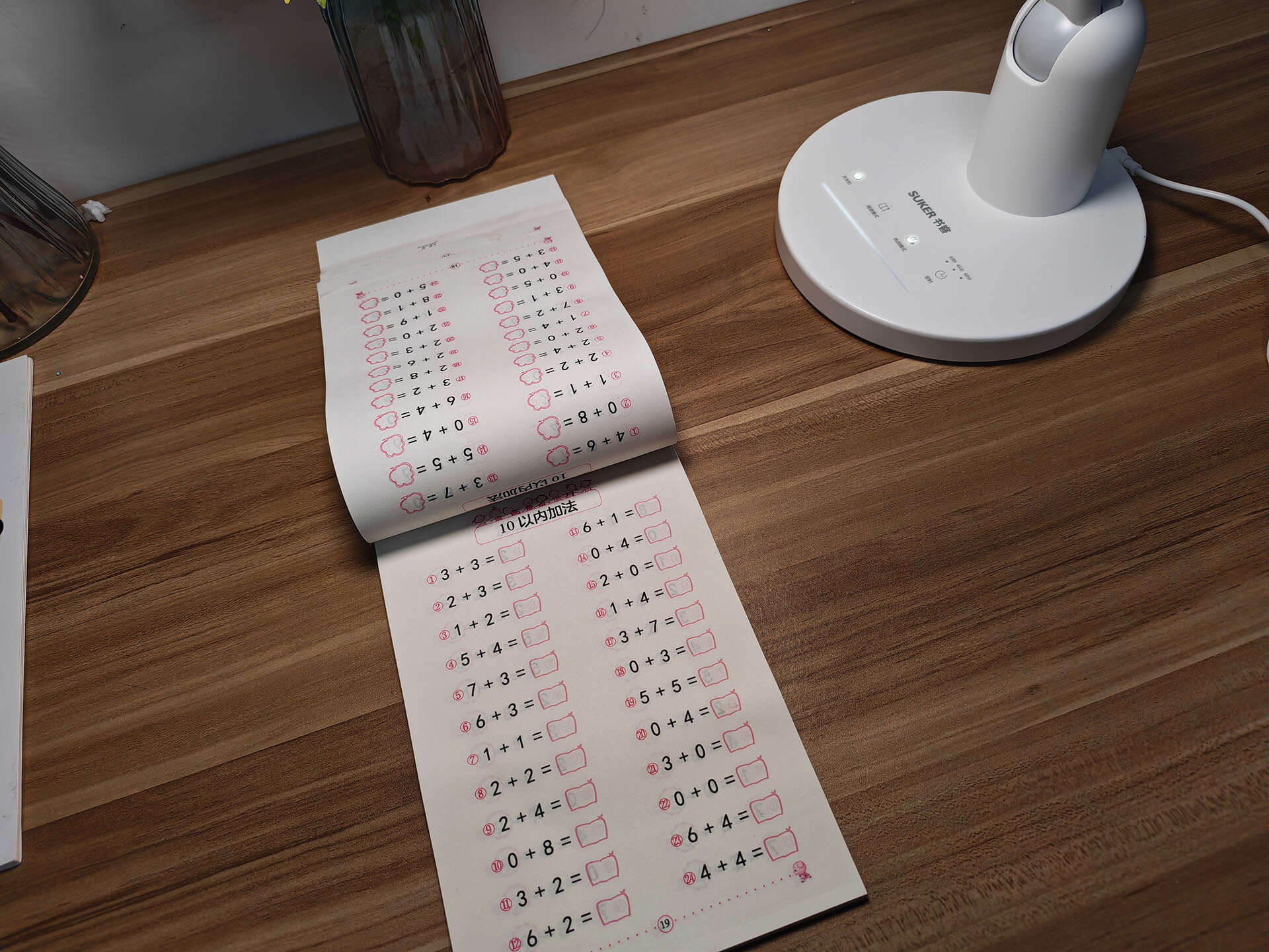 以前的台灯比较小,只能照亮书桌中间一小块,写作业时很容易落到光线以外,书客 SKY 用了OCLT 光透镜技术和五重环域控光系统,照明范围能覆盖 1.2 米的大书桌,中心照度更是国 AA 标准的 2.15 倍,这就能够轻松为整个桌面照明,不会出现黑乎乎的遮挡了。