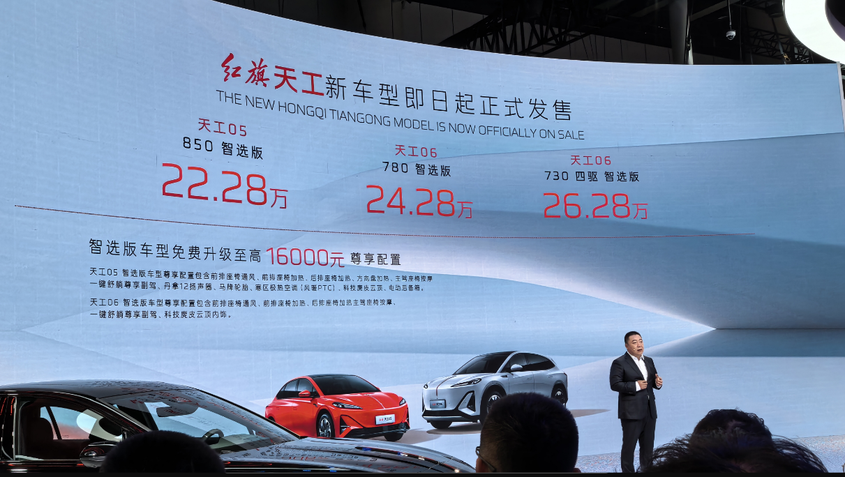 更为贴近年轻用户的是红旗天工家族。天工05 850智选版、天工06 780智选版、天工06 730四驱智选版等新车型正式发售,它们全部搭载行业领先的全域900V高压平台技术。这不仅意味着高达850公里的超长续航,更实现了“充电10分钟,续航500公里”的畅快补能,精准击破纯电出行的核心痛点。