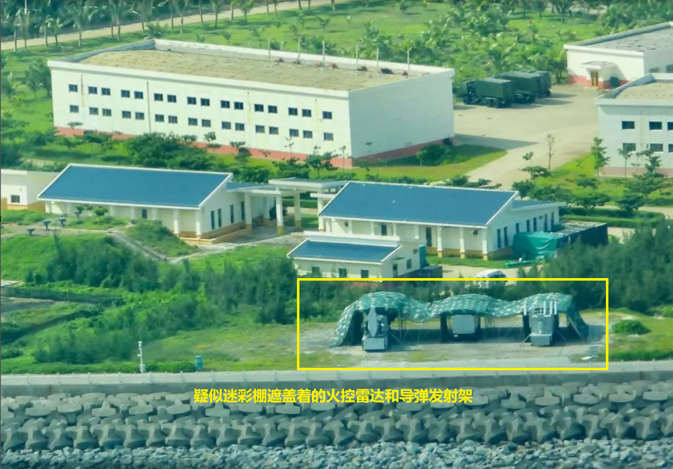 此外,岛内构建起了有警戒/火控雷达、舰炮、近防炮、防空导弹、反舰导弹等对海/对空防御阵地,用来保护岛上的营地等设施免遭来自海上和空中的袭击。