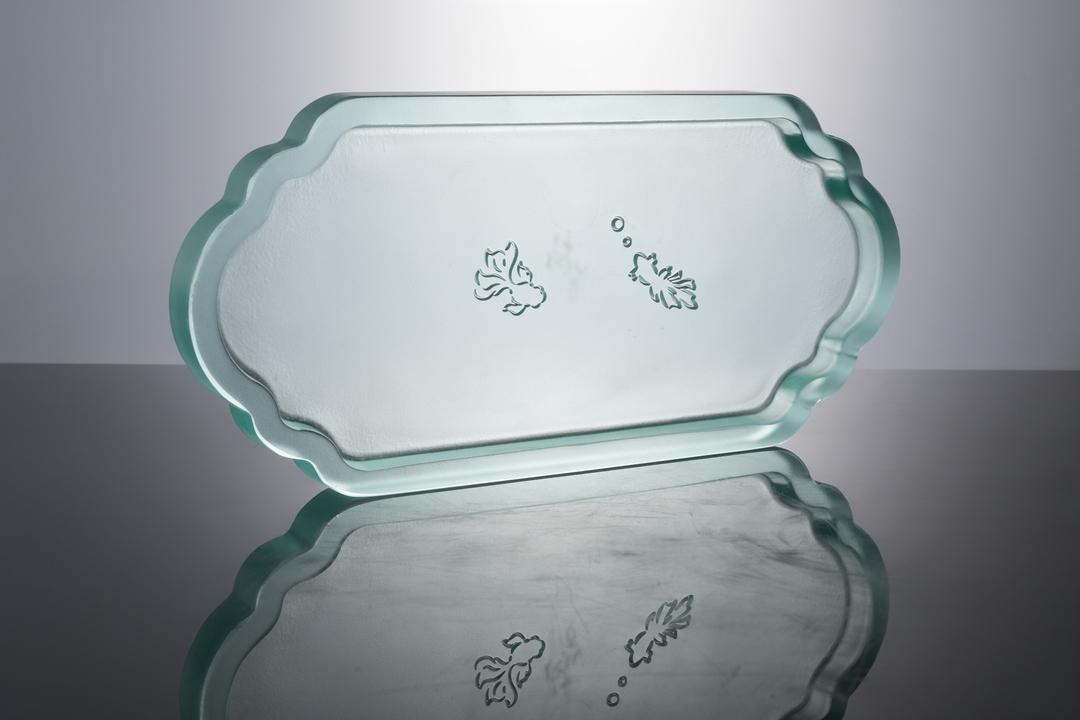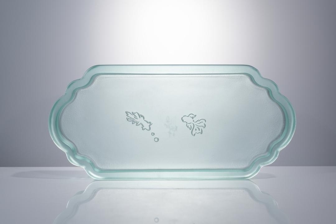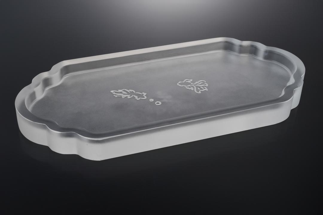 当光线照射在托盘上时,琉璃的通透质感得到了淋漓尽致的展现。光线透过琉璃,折射出五彩斑斓的光芒,使整个托盘仿佛散发出一种神秘的光辉。在不同的角度和光线下,托盘呈现出不同的光影效果,时而璀璨夺目,时而柔和温润,给人带来无尽的视觉享受 。