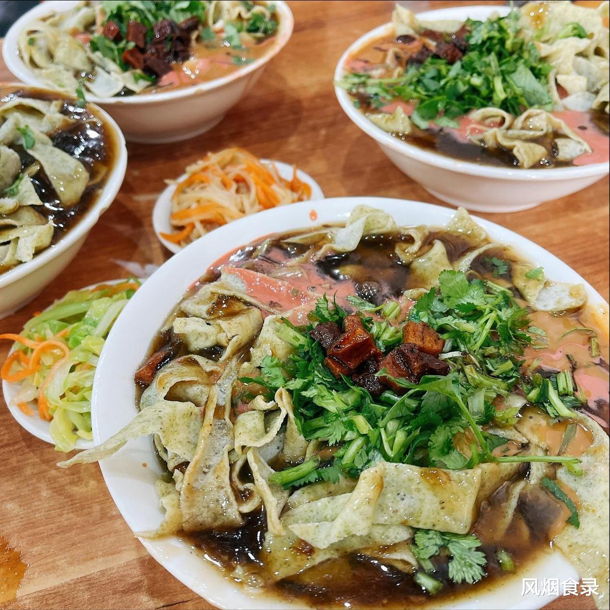 柳叶状的绿豆煎饼条吸饱红亮卤汁,外软内韧,咸鲜里透着腐乳香;