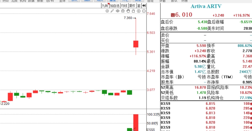 另一家创新药公司Artiva ARTV股价也暴涨116%,该公司于2025年10月16日宣布其候选药物AlloNK在难治性类风湿关节炎RA中获得FDA快速通道资格,成为深度B细胞清除类别首个获得此资格的候选药物。