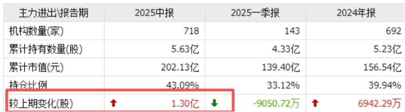机构动态:二季度持股机构数718家,较一季度增加575家,合计持股5.63亿股,加仓1.3亿股。