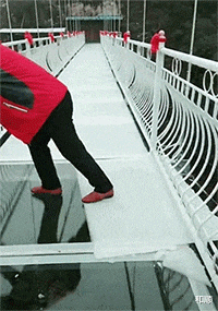 玻璃栈桥的工作人员也是很胆小哈哈!