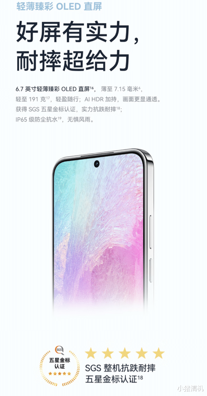 nova 14 活力版深知年轻人的生活节奏:厨房炒菜手湿?支持湿手触控,边做饭边回消息毫无压力;下雨天赶地铁?IP65级防水防尘,小雨泼溅完全无惧;手机不小心滑落?通过SGS五星金标抗跌耐摔认证,日常磕碰更安心。