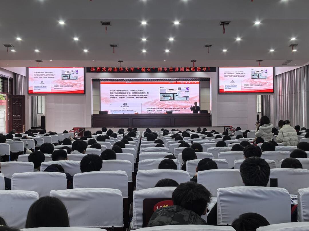 3月20日上午,南华大学“薪火”宣讲团来到衡阳县三中,开展“筑牢安全防护带,争当国安新生代”主题宣讲活动,将国家安全、核安全与网络安全知识送到青少年身边,引导广大师生树立总体国家安全观,厚植家国情怀。