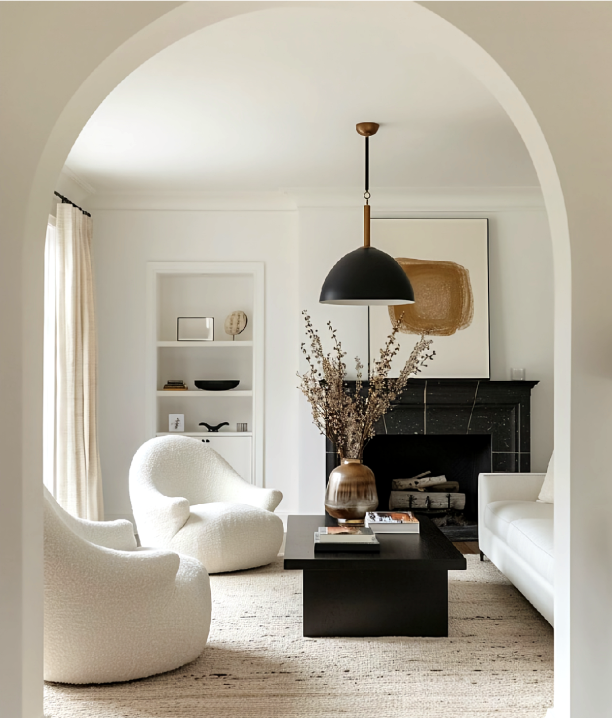 本宅,留双门,打红墙,成为前后门的一条洄游线路,一半是书香气,一半是悠闲生活的大横厅,九米落地窗是大平层的格局,还是气场!