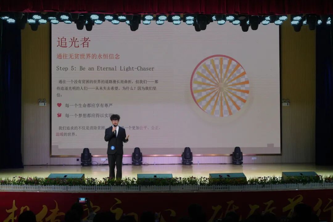 在主题演讲环节,各队伍分别就“无贫困”“良好健康与福祉”“性别平等”“负责任消费与生产”“体面工作和经济增长”“和平、正义与强大机构”等议题展开阐述。