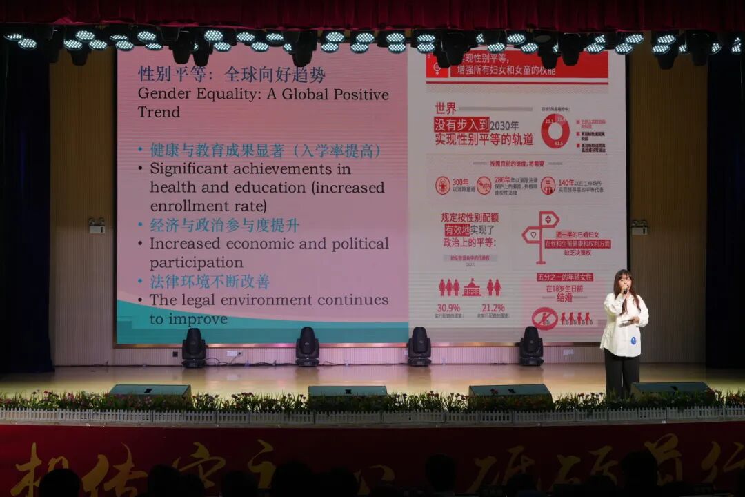 马克思主义学院代表队直击“性别平等”议题,通过调研数据与真实故事,呼吁打破职业与社会角色的性别偏见,演讲极具感染力。