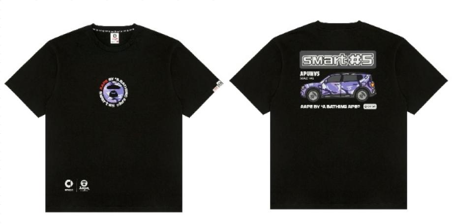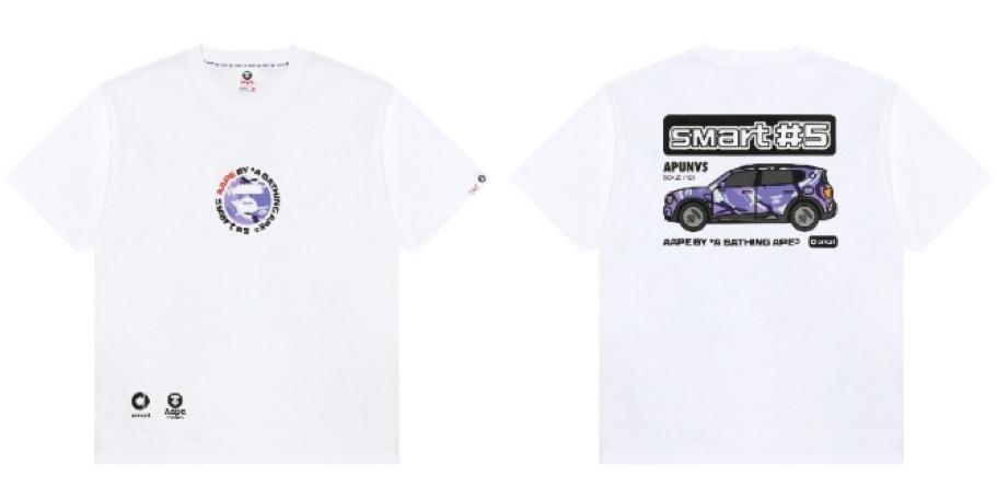 为纪念合作,smart与AAPE以联名smart #5为设计蓝本,推出黑色、白色两款限定短TEE。正面加持由双方品牌字母环绕组成的简约联名图案,背面则覆盖醒目的联名汽车图案印花,采用手绘画风诠释源自街头的独特调性。拥抱年轻新世代的生活方式,双方亦释出汽车造型的托特包,为都市旅程增添随行活力。限定短TEE将于10月17日正式登陆AAPE精选门店限量发售。