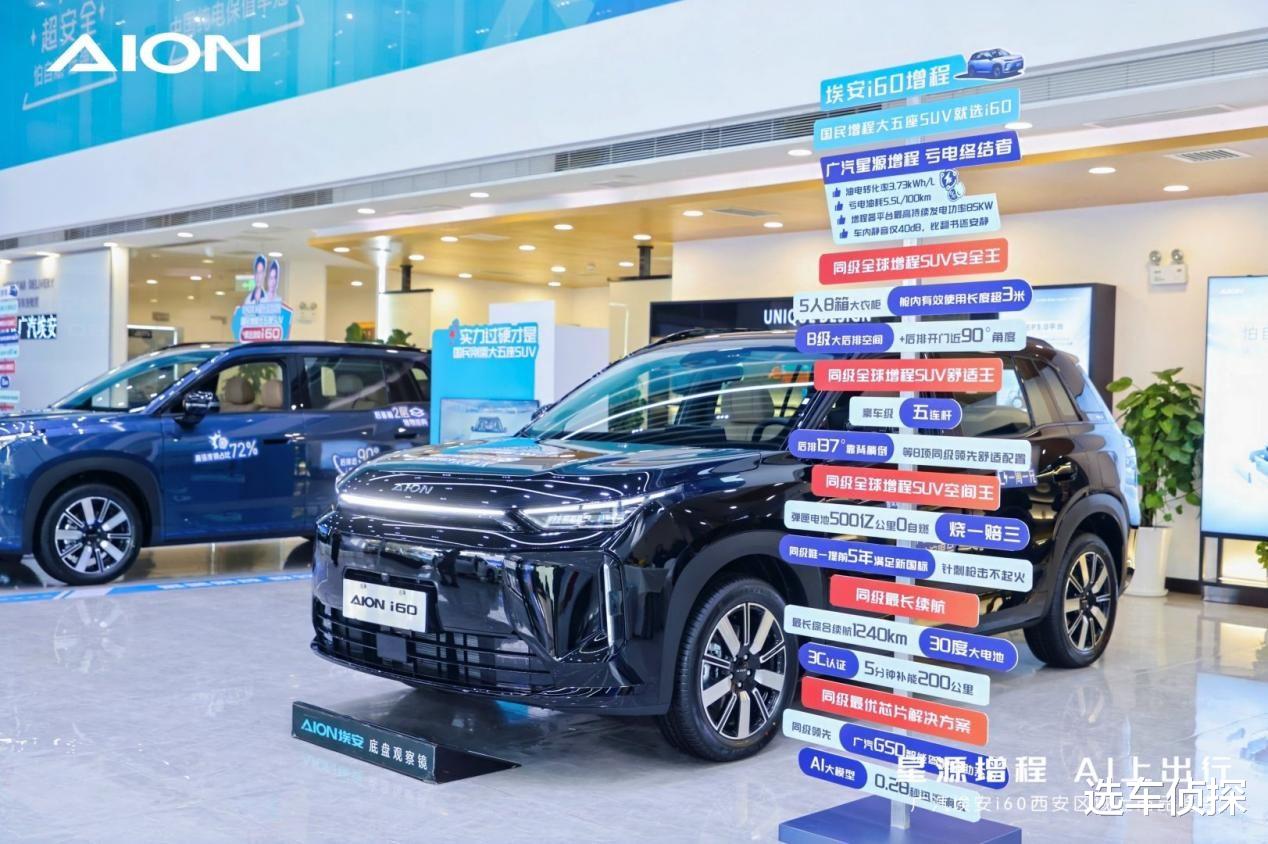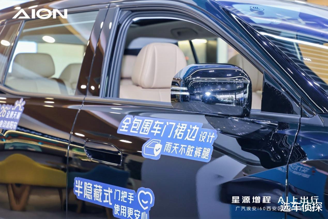 安全性能上,广汽埃安i60更是构建了全方位的防护体系。车身结构热成型钢占比72%,车身在电池仓两侧增加专属防护,实现侧碰撞工况0侵入。弹匣电池2.0可靠稳定,已达成500亿公里0自燃的纪录,电芯内部增设气凝胶,有效隔断热失控发生时产生的热量传递,同时电池包享受360度全方位防护。此外,还标配6安全气囊系统,拥有同级最长的2.2米侧气帘,并创新设计后排儿童专属头部保护腔体,还配备了紧急下电和半隐藏式机械门把手,极大保证了用户的逃生救援机会。更值得一提的是,针对增程版车型推出行业首创的“烧一赔三”承诺,若实际馈电油耗超过官方公布数据,超出部分将按3倍赔偿,彻底打消用户对增程车型油耗的顾虑。