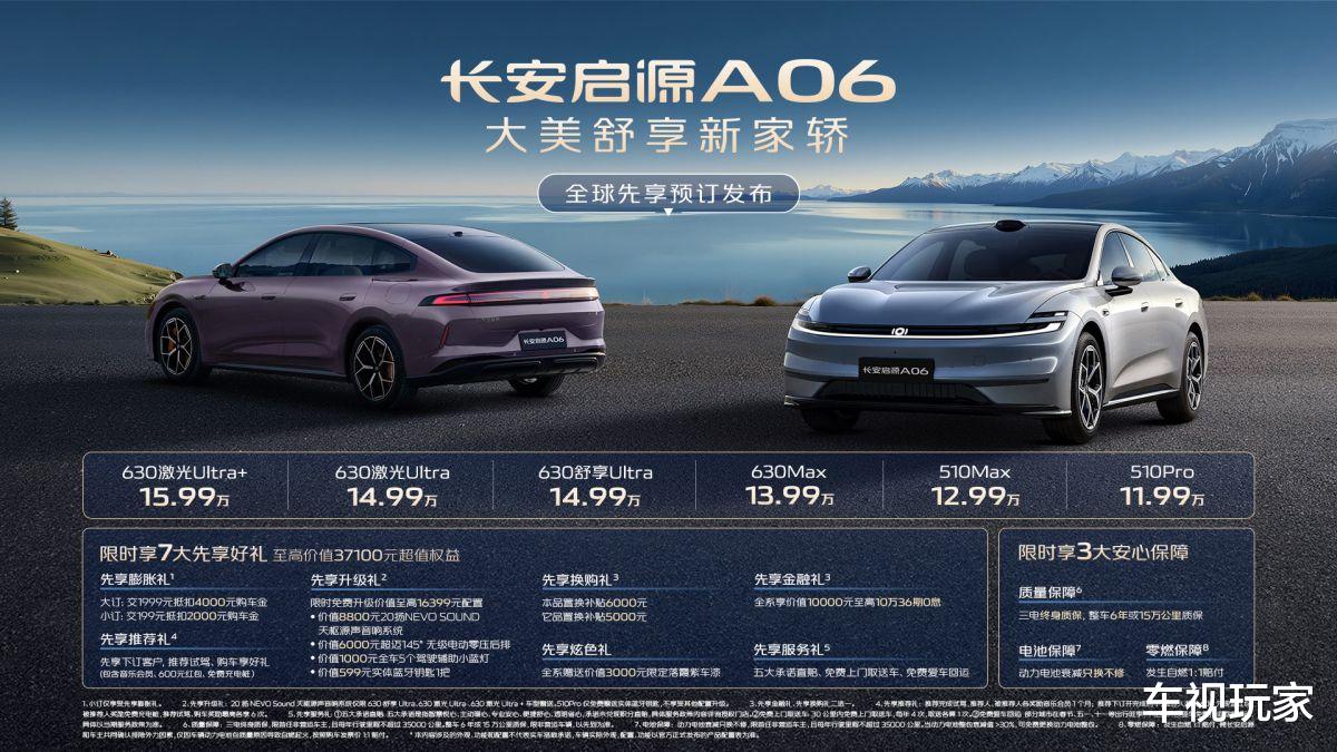 9月28日,长安启源首款纯电家轿A06启动全球先享预订,共推出630激光Ultra+、630激光Ultra等6款配置车型,先享价11.99万-15.99万元,同步上线7大先享好礼与三大安心保障,精准匹配主流家庭对纯电家轿的核心需求。