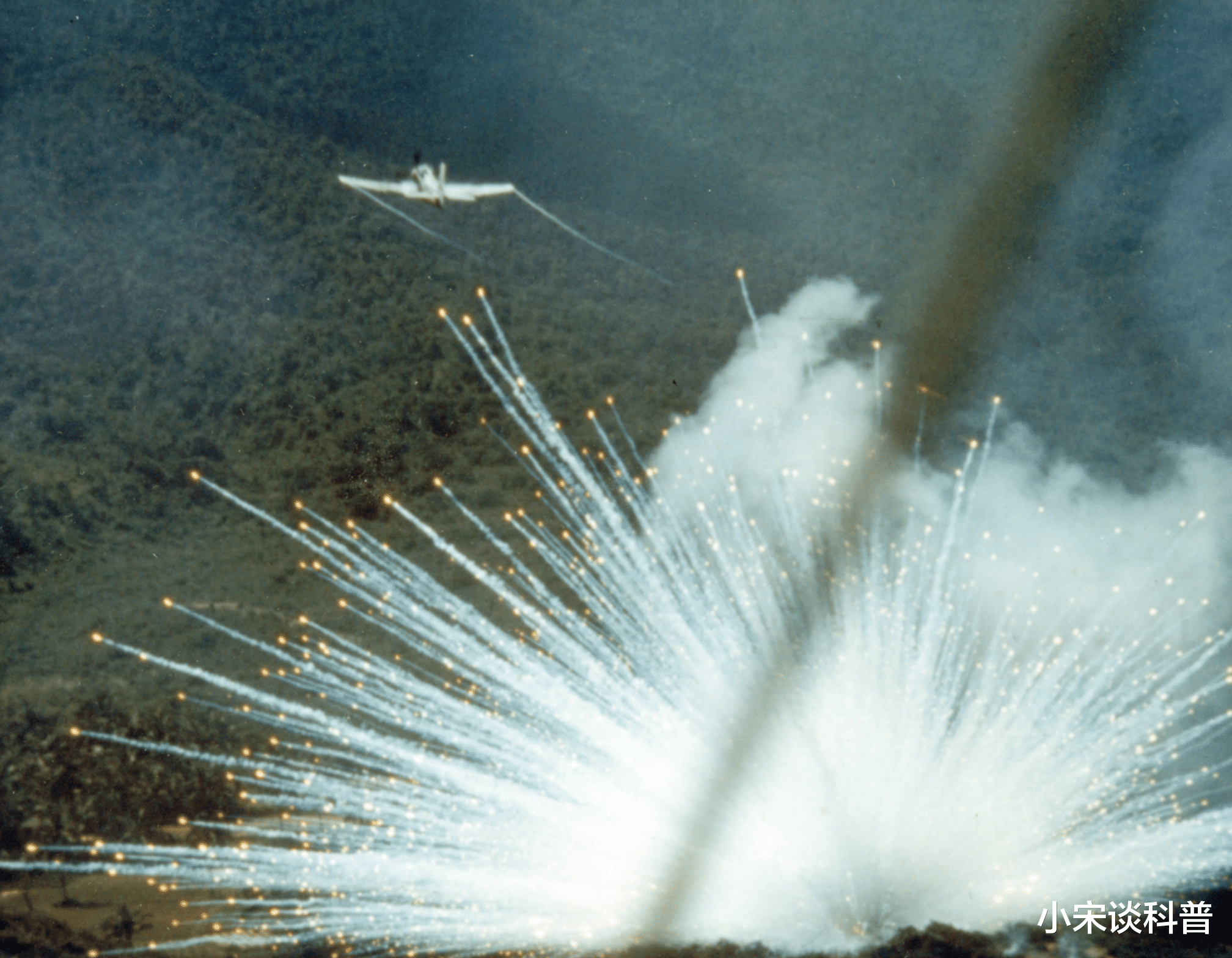 白磷燃烧弹就是在普通炸弹里装上化学物质白磷,它们被投放到空中以后炸开。因为白磷的燃点只需要40度。这些燃烧弹炸开后,与氧气接触就会迅速燃烧。而且白磷燃烧弹的燃烧时间相对较长,能够持续燃烧数小时,产生持久的火焰和烟雾。