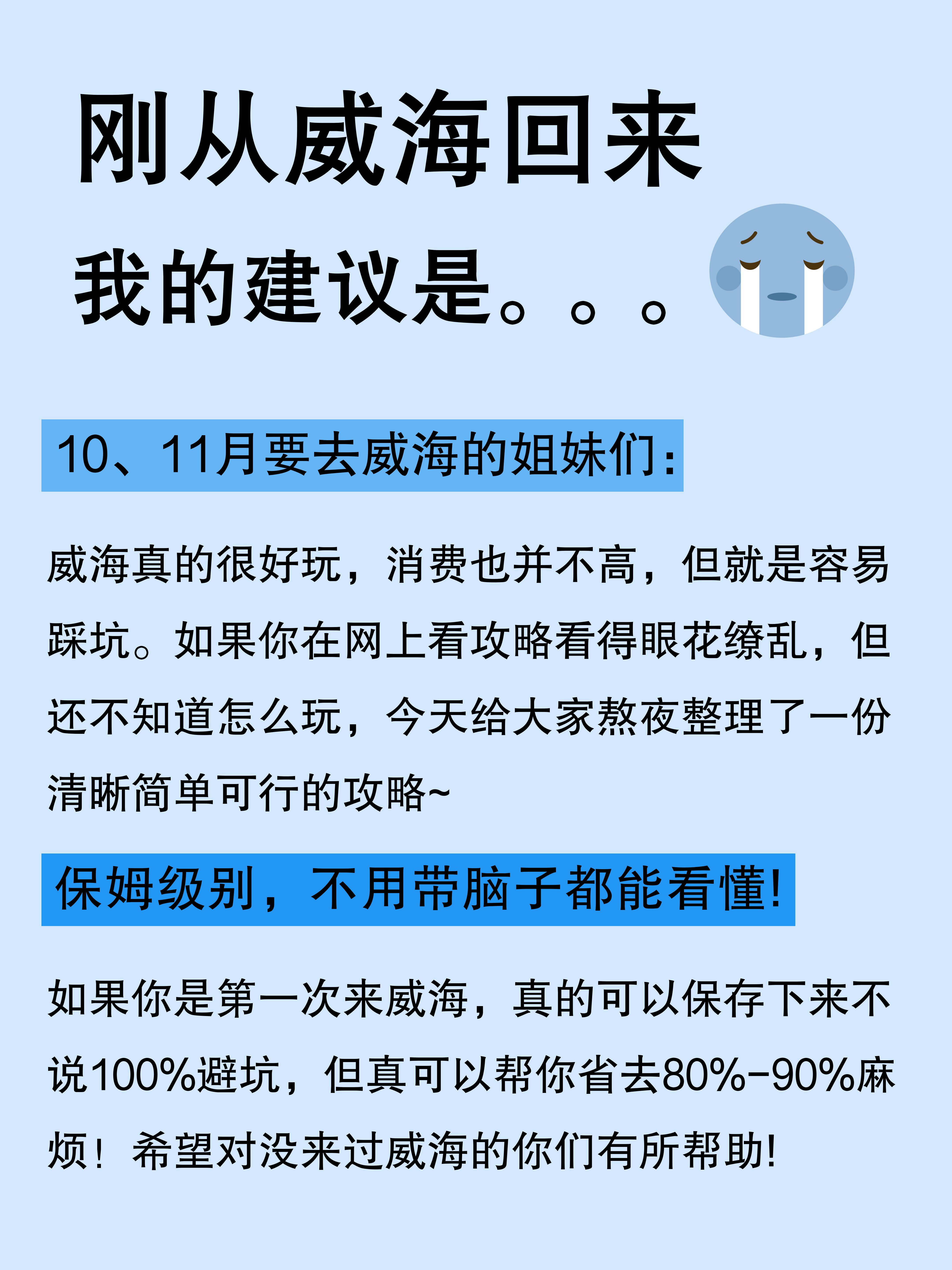 希望打算10-11🈷️去威海玩的姐妹都可以刷到这篇旅游攻略,10上旬去的威海,总结复盘了一下威海旅游攻略,希望对你们有帮助~