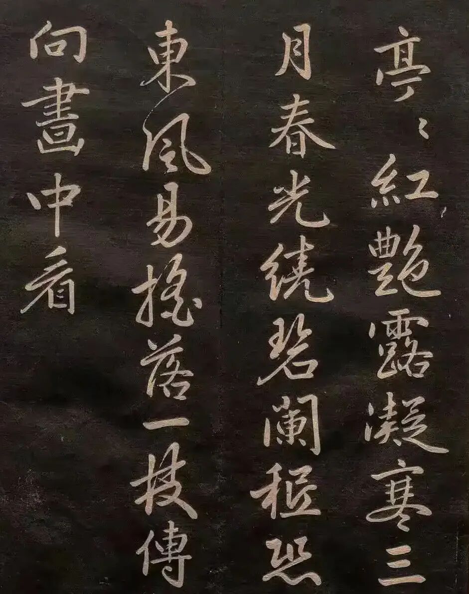 2.亭亭红艳露凝寒,三月春光绕碧阑。只恐东风易摇落,一枝传向画中看。