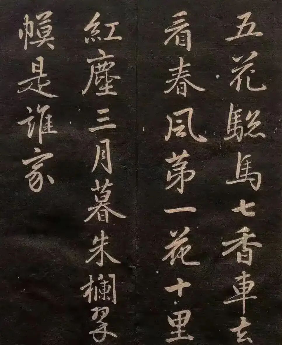 1.五花骢马七香车,去看春风第一花。十里红尘三月暮,朱栏翠幕是谁家。