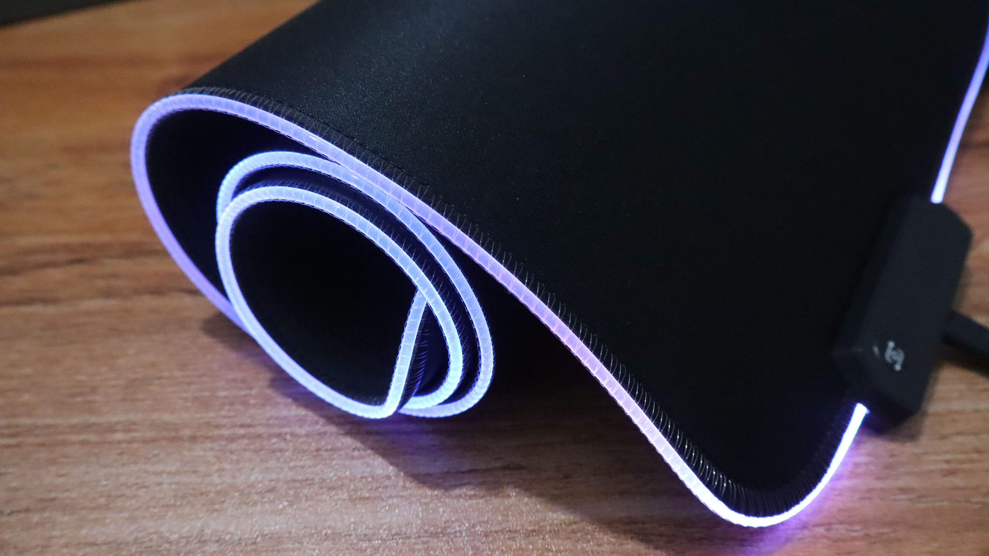 按一下左上角的按键,你就得到了一块镶着光条的鼠标垫,再按多几下,这个光条还能变换不同的颜色,光条的灯效有10种,可以根据自己的喜好进行选择。