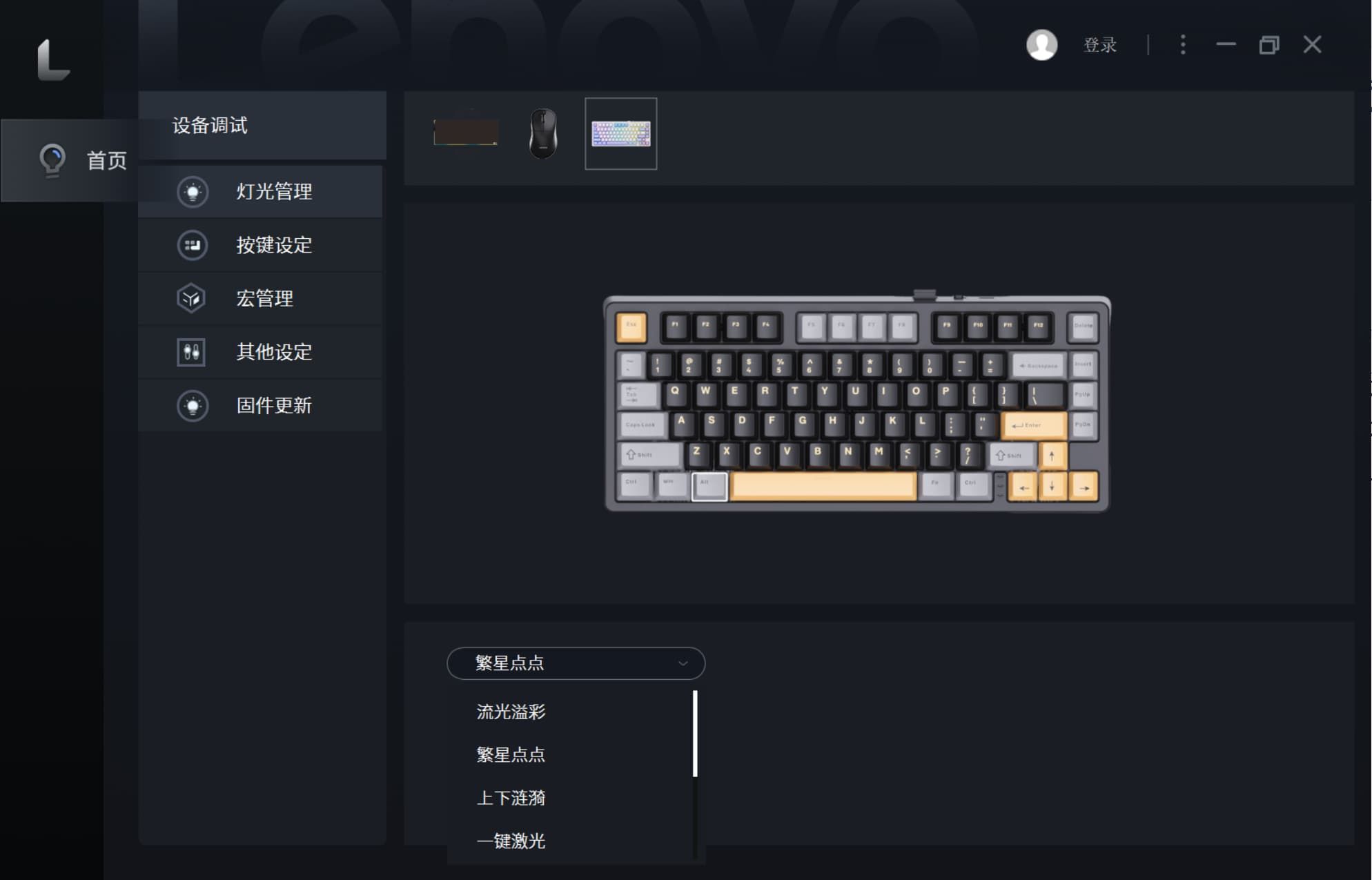 Lenovo Aurora除了做全家桶的光效控制,也是这几个设备的驱动管理软件。