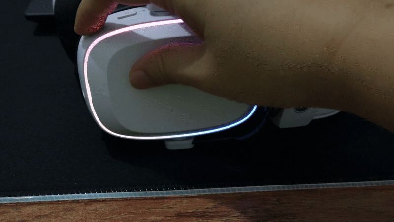 这款鼠标最大的特色当然在于光效设计,正面两条灯带很有跑车的范儿,按DPI键除了能够变换DPI档位,灯带的颜色还会随之变化。