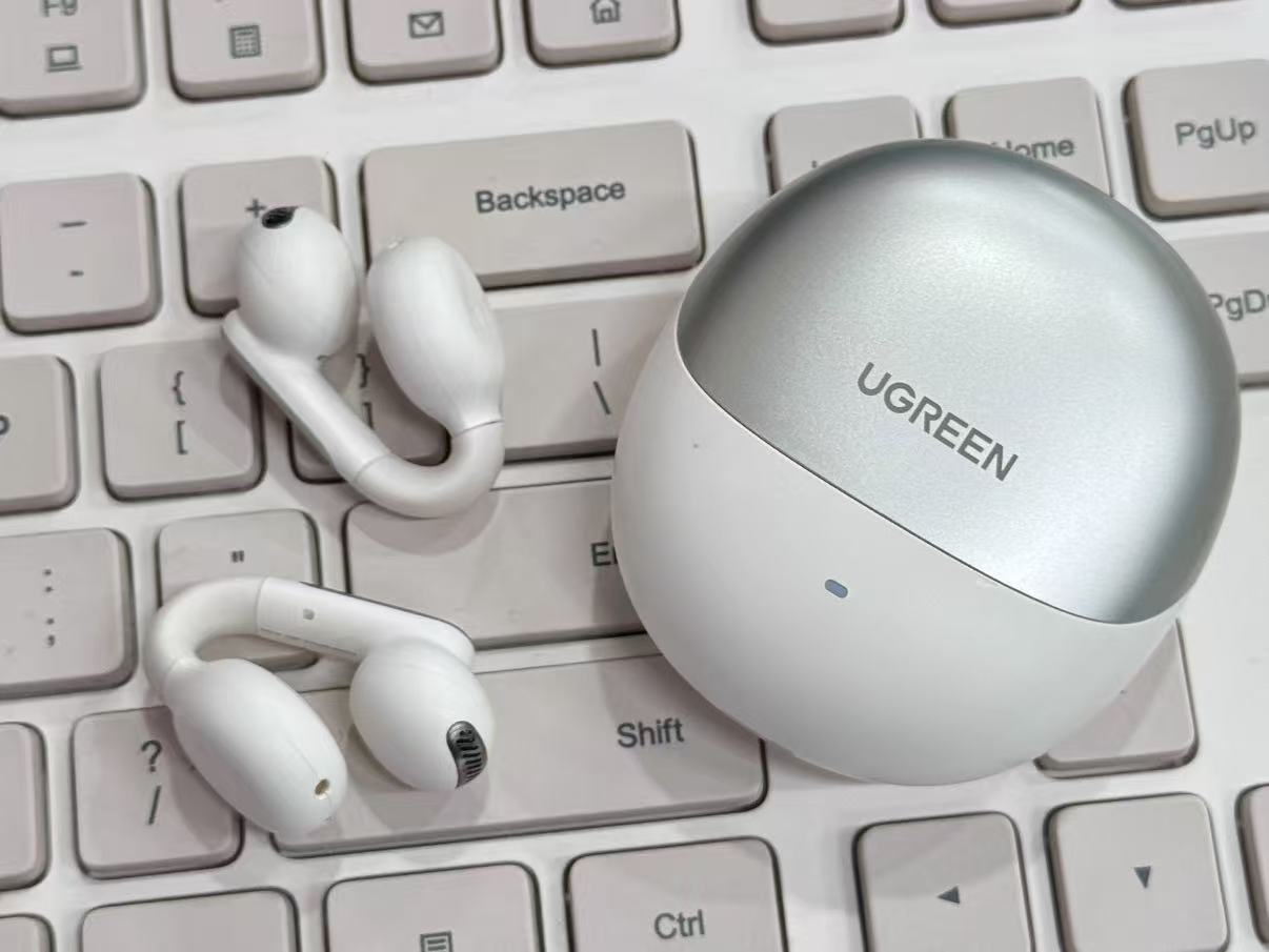 本款绿联S5耳夹开放式耳机单只重量仅5.6g,采用U型耳扣式耳夹设计,搭配记忆钛合金丝,弯折不易断,佩戴时轻盈无负担,摇头、运动也能牢牢固定。搭载12mm超大动圈发声单元,低音扎实不轰头,中高频清澈明亮,配合器传动到定向传音,兼顾音质与环境感知安全性。此外,支持Bluetooth v5.4协议,连接快速稳定,切换设备无延迟,具备IPX5级防水防汗性能,日常出汗、小雨天气均可使用,综合续航可达6+24小时,配备指向性麦克风DNN降噪技术,通话人声清晰突出。