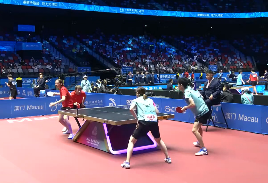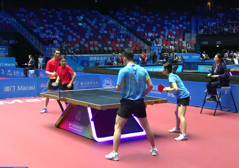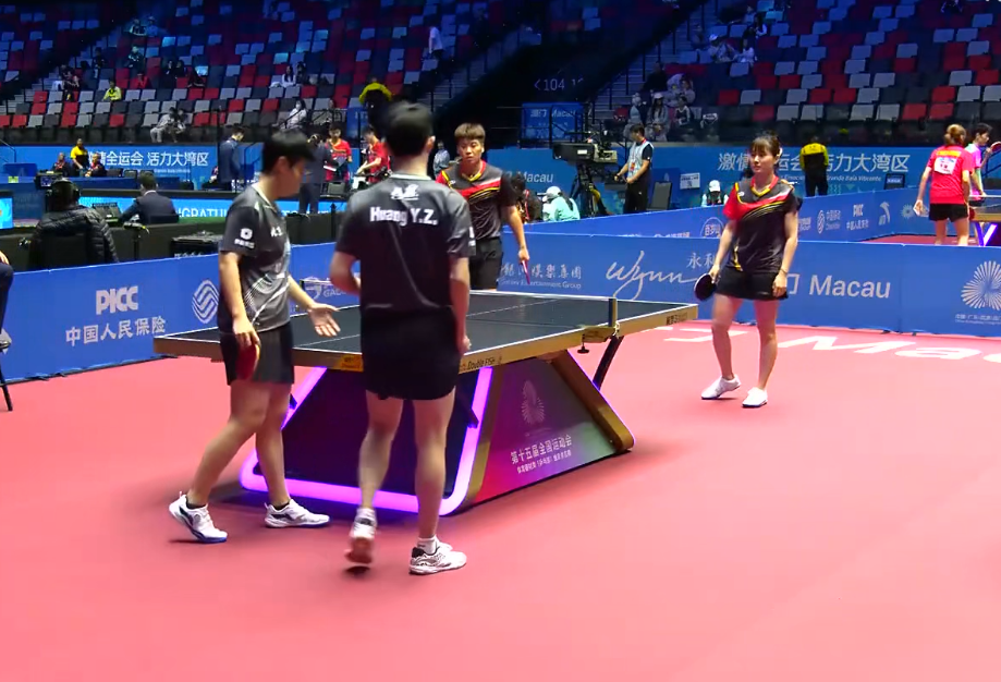 湖北组合周雨/臧小桐对阵山东组合于子洋/范思琦,这场比赛争夺极其激烈,双方不仅打满五局,且每局几乎都形成鏖战。周雨/臧小桐赢得极其惊险,两局领先的情况下被连扳2局,终于在决胜局把握住机会惊险拿下,1/8决赛对阵香港组合黄镇廷/杜凯琹。