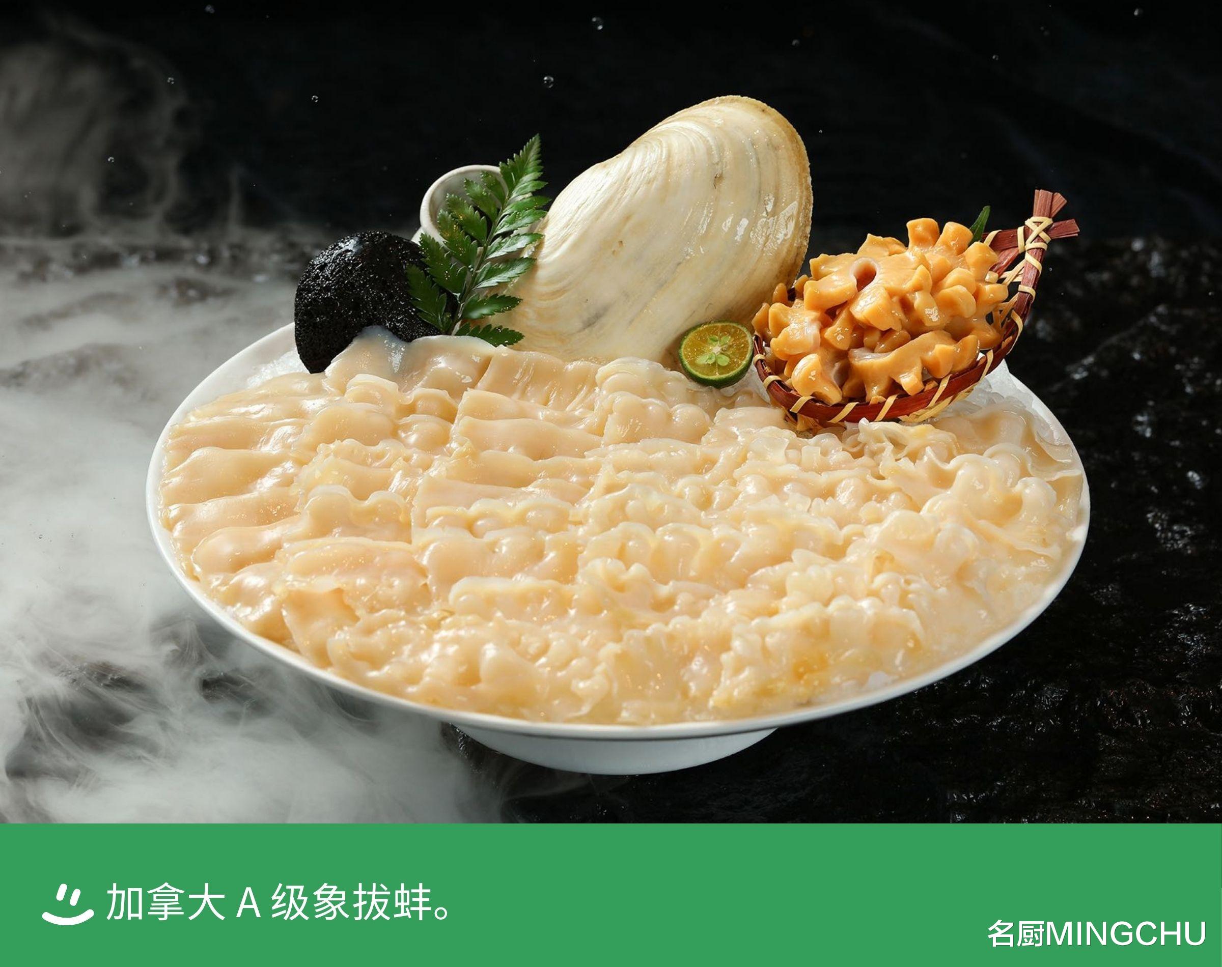 加拿大 A 级象拔蚌对“本味”的执着,让官也街的菜单成了“舌尖上的环球地图”。全球鲜捕,朝海夕食。官也街甄选加拿大 A 级象拔蚌,从西海岸深海直达京城餐桌。象拔蚌切成薄片,只需轻涮 2-3 秒,或涮 5 秒,蚌头切片涮 20 秒,即可搭配海鲜汁蘸食。