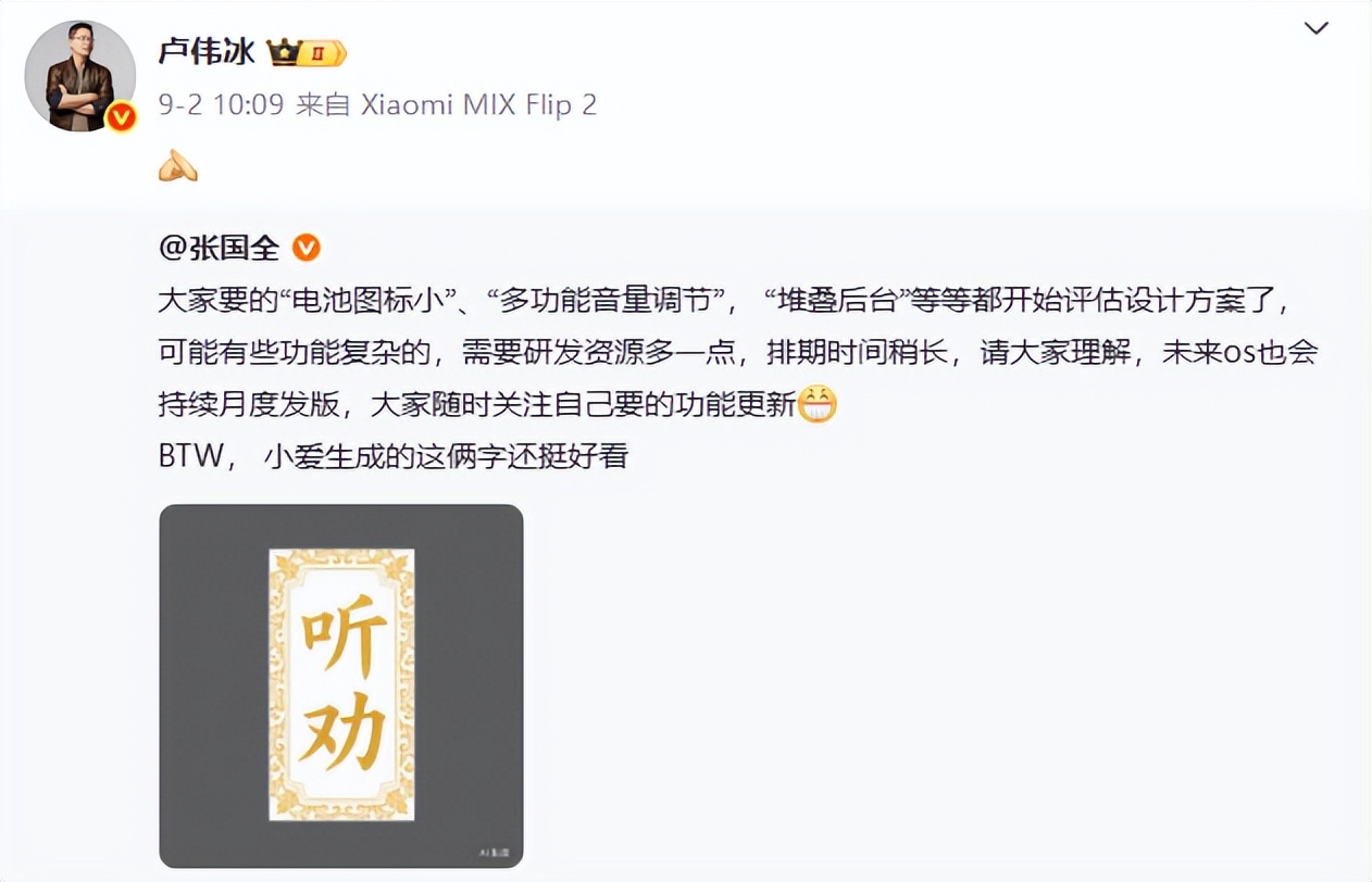 或许是看到澎湃 OS 3 的口碑一路飘红,连消失三年的金凡老师都忍不住冒泡了!已经三年没发过社交媒体,今天突然在微博冒头,一开口就扔了个重磅消息:目前已经有超过 70 万用户参与了澎湃 OS 3 的内测。还承诺接下来会继续打磨正式版,争取给大家更好的体验。