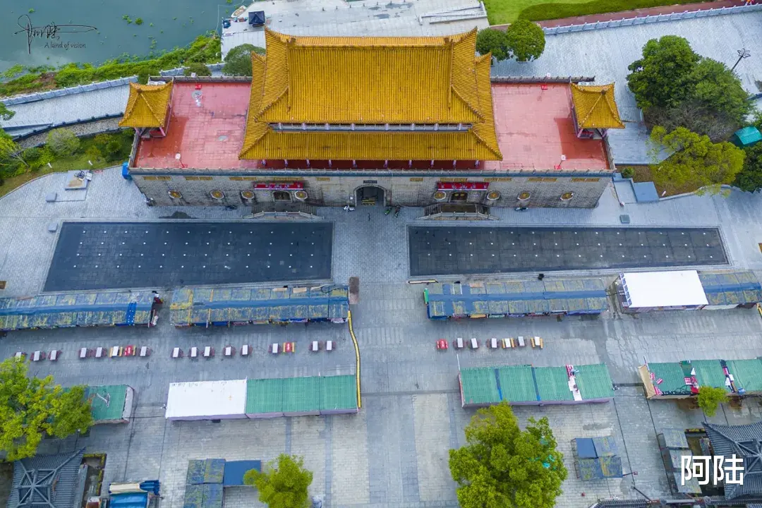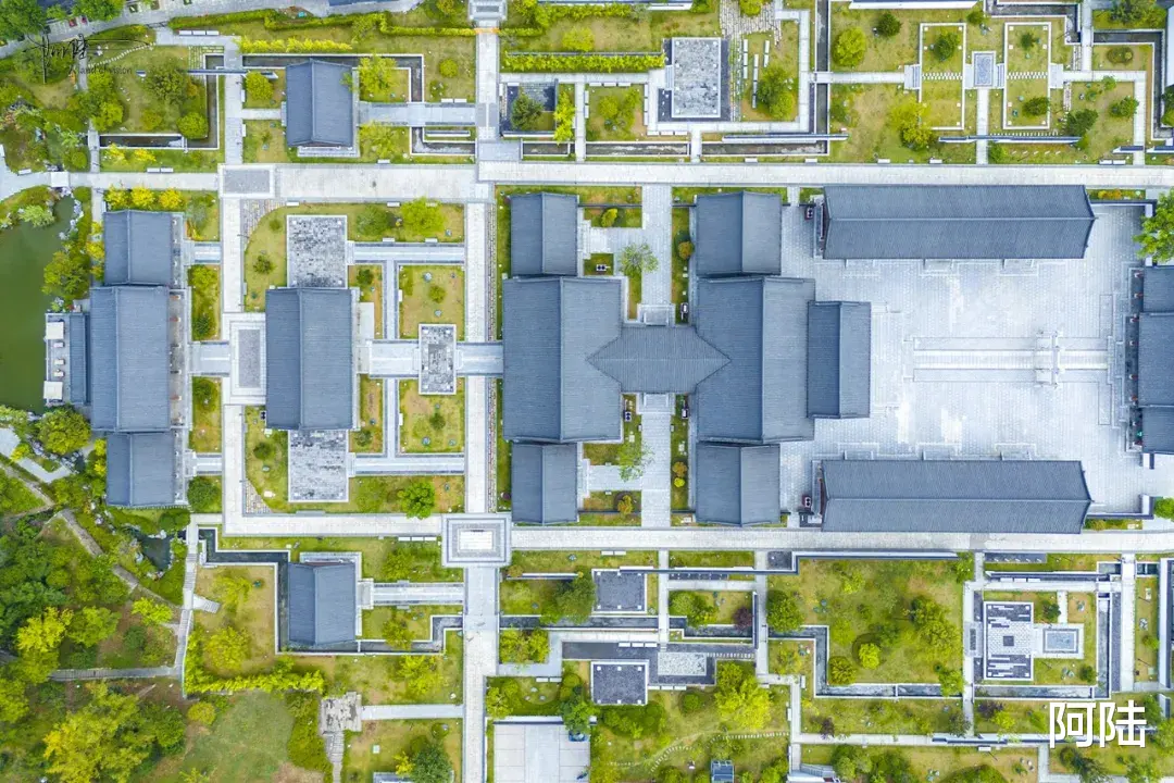 瑞州府衙公园则是在原市政府旧址恢复性建设而成,2022年1月正式对外开放。作为元青花文旅融合示范区核心项目,公园由清华大学建筑设计研究院团队设计,采用宋代官式建筑风格,包含29栋传统榫卯结构建筑群。所以通过航拍视角,刚看清它的大致规模的时候,还是让我莫名惊诧了一下:“这么大的园林,竟然是免费的?!”