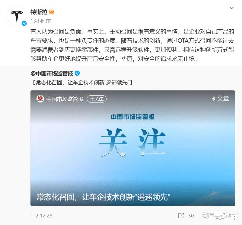 针对召回,特斯拉曾在2024年初表示,“有人认为召回是负面。事实上,主动召回是很有意义的事情,是企业对自己产品的严苛要求,也是一种负责任的态度”。那么特斯拉这句话能信吗?