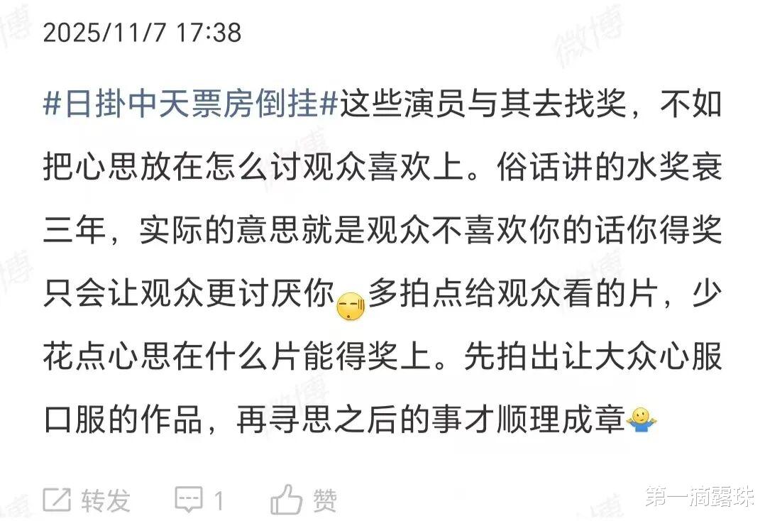 既然影视剧需要观众们买单,观众们才是最终的评委。就像有观众说的那样,与其纠结拿奖,不如好好在作品上下功夫,多研究如何拍观众喜欢认可的作品。