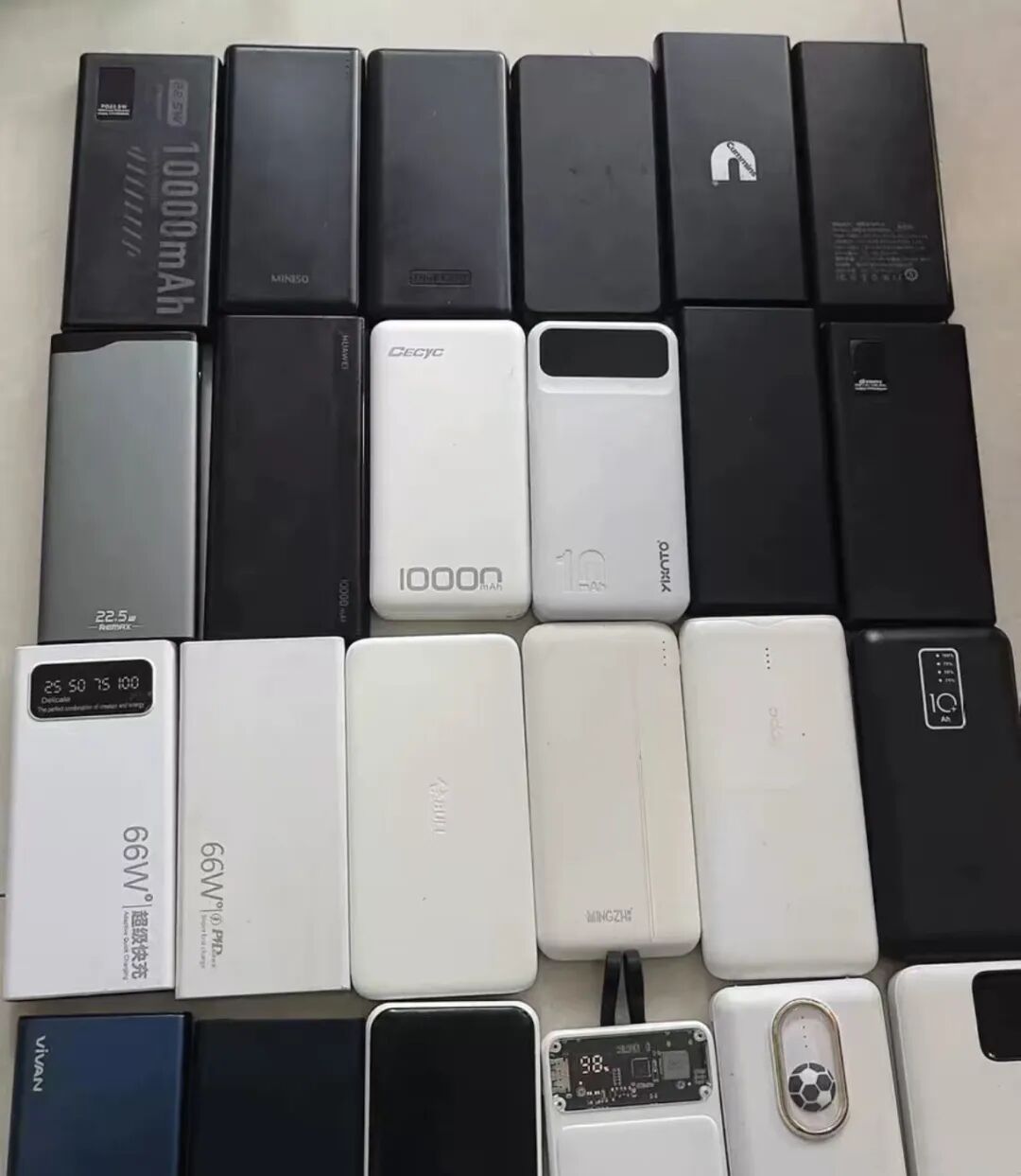 最后我随便找了两张照片,可以看到还有小米早期的1万毫安充电宝,三星的充电宝和很多不知名充电宝,有两个外壳标注“66W”一看就是杂牌,圈子里调侃“66W”是型号名字,不是功率输出。总体来说价格虽然便宜,但也不容易捡漏。