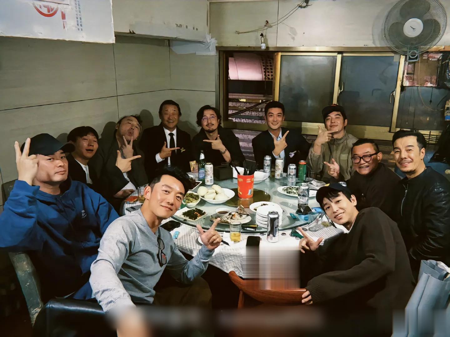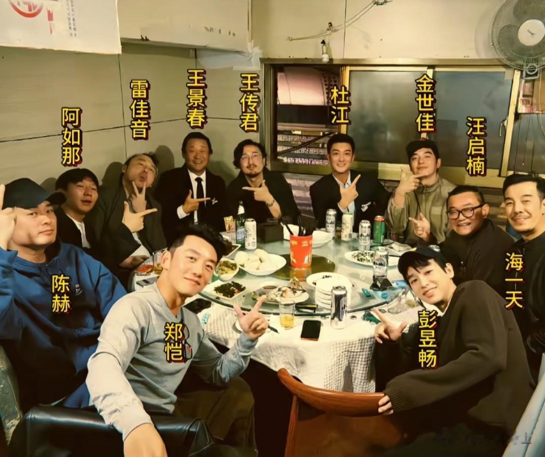 中青年男演员雷佳音、陈赫、郑恺、王传君、阿如那、杜江等人参加完校庆活动,在一家苍蝇馆聚餐,被网友调侃为“老登”聚会。