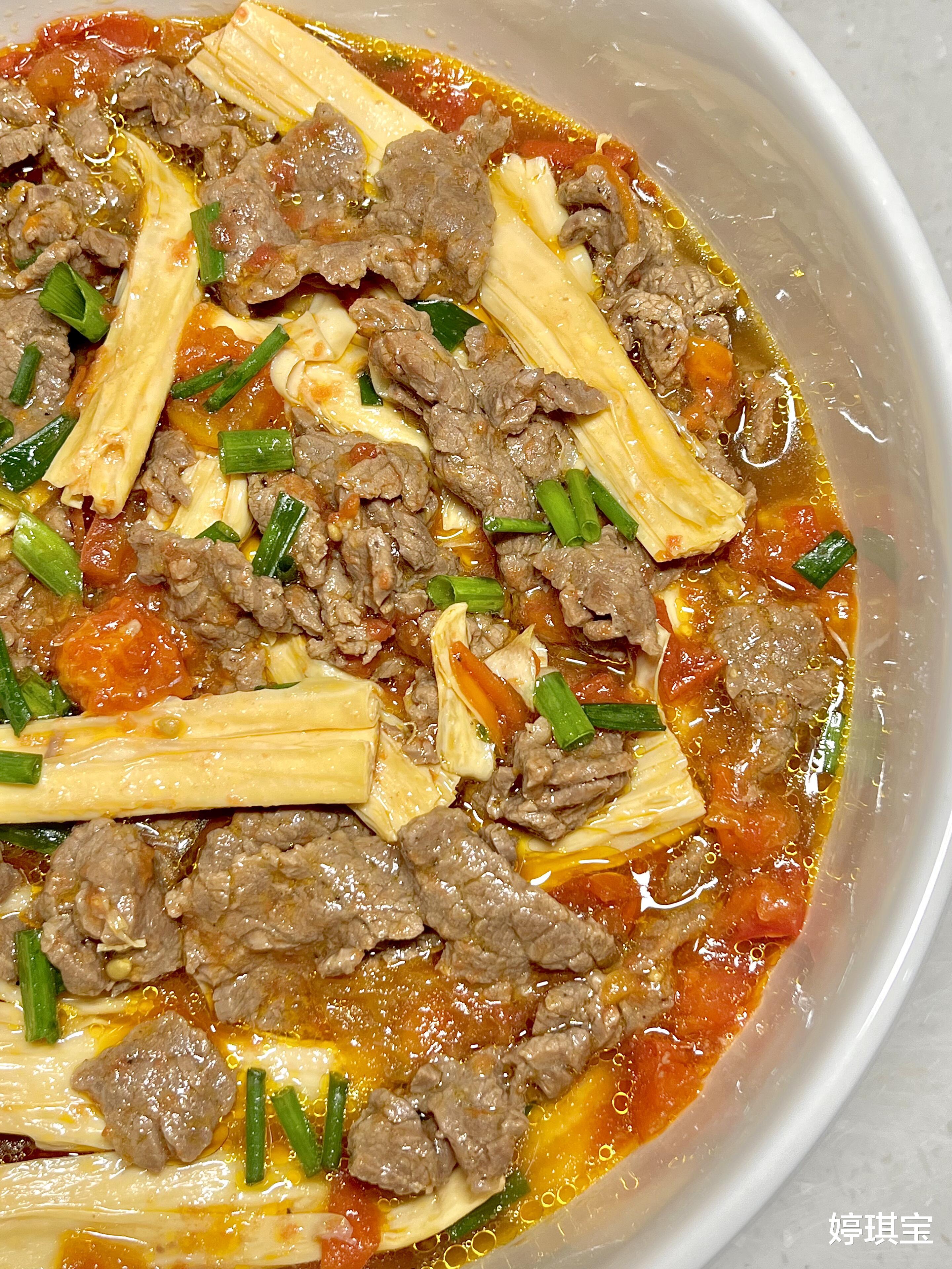 今晚不妨炖个番茄腐竹牛肉煲吧!让它那酸甜咸鲜的滋味,温暖你的身心。记得要多备点米饭,因为这汤汁实在是——太下饭啦!