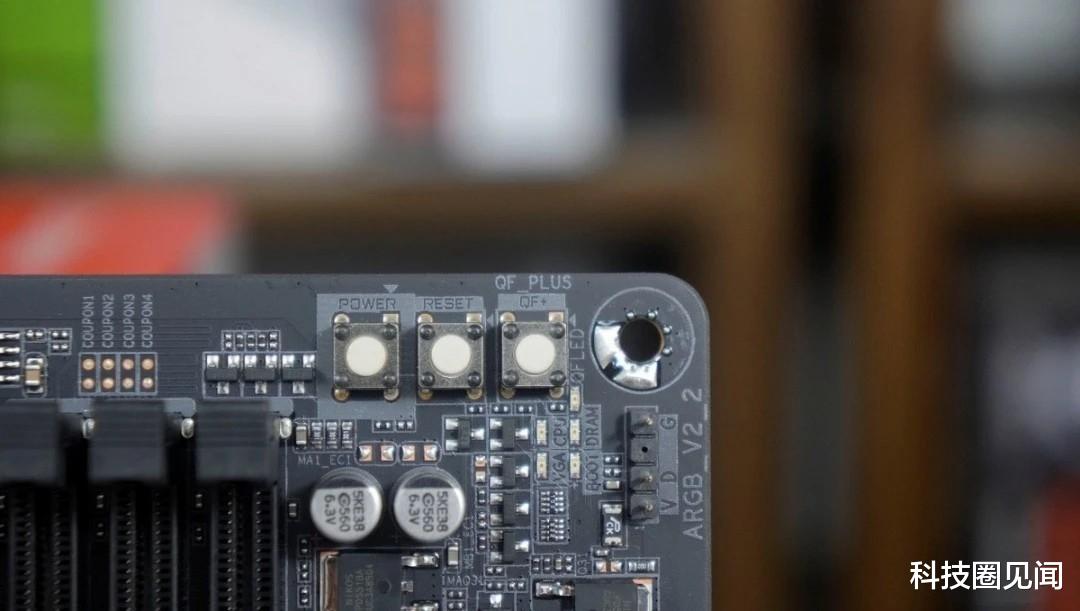 还有三个物理按键也很有必要提一提,分别是电源键、reset键和BIOS更新键(QF Plus)。之前装机排查故障时,得频繁插拔电源或短接跳线,特别麻烦,有了电源键和reset键,不用接机箱按钮就能开机、重启,排查问题更高效。BIOS更新也很方便,把更新文件放进U盘,插在标识“BIOS USB3.2”的红色接口上,按一下更新键就能自动完成,不用进系统操作,小白也能轻松搞定。