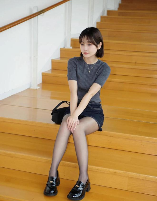 这黑色丝袜,给整体造型添的那一丝性感,是极有分寸的。它不像浓妆艳抹那般咄咄逼人,更像水墨画里的淡墨晕染,优雅得恰到好处。搭配着灰针织的沉静、牛仔裙的率性,它的性感便成了一种高级的点缀,如同城市里那些隐于繁华后的艺术画廊,小众却充满格调,让人忍不住想要驻足品味。