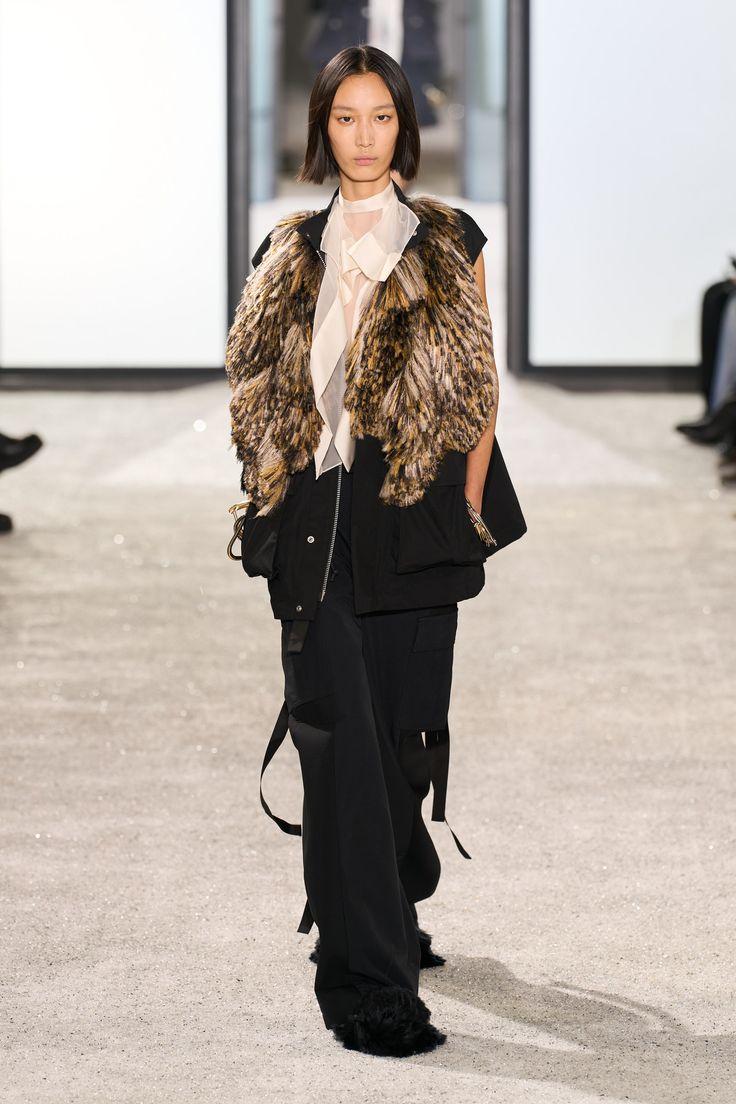 东方水墨意境:Sacai以水墨笔触渲染豹纹,搭配和服式剪裁,弱化野性,突出禅意。